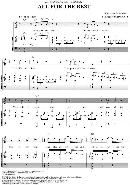 "All For The Best" Sheet Music by Stephen Schwartz