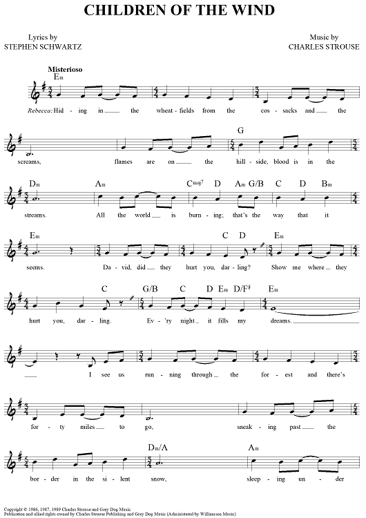 Digital Sheet Music for Children of the Wind by Charles Strouse, Stephen Schwartz scored for Lead Sheet; id:457184