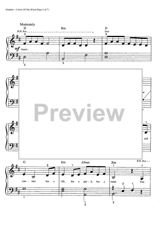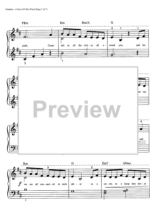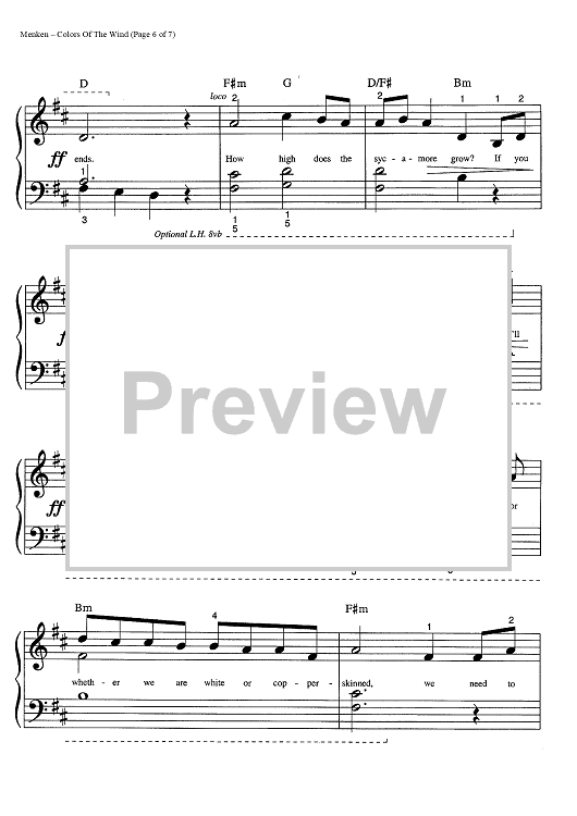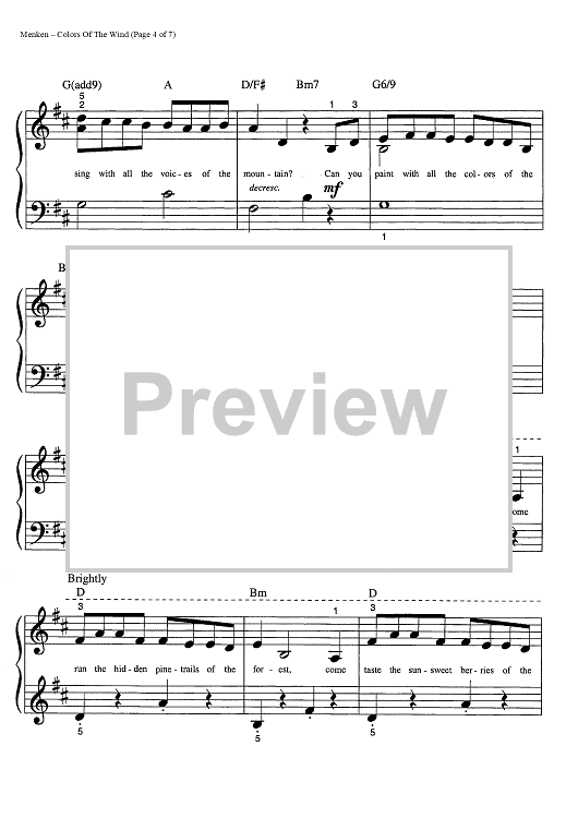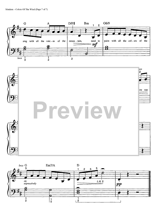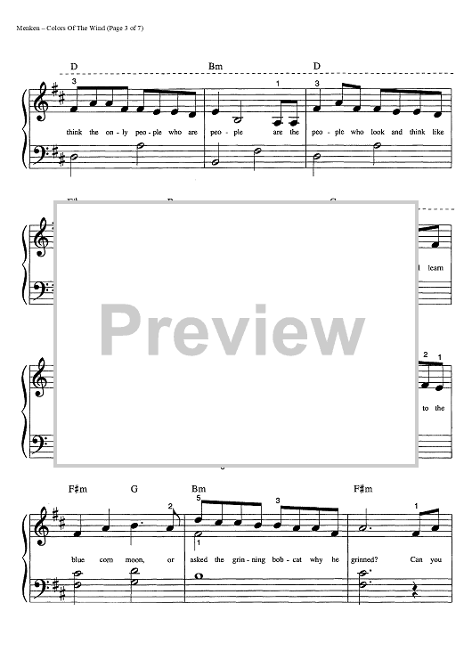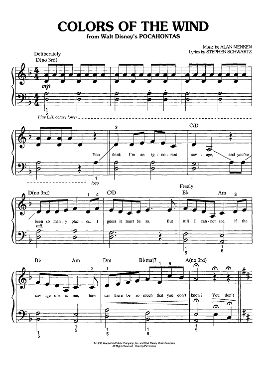 Digital Sheet Music for Colors Of The Wind by Alan Menken, Stephen Schwartz, Vanessa Williams scored for Big Note Piano; id:445073