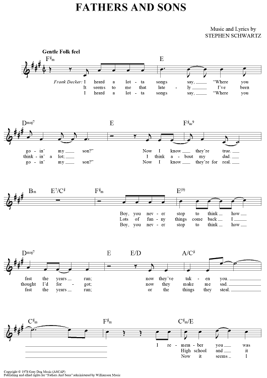 Digital Sheet Music for Fathers and Sons by Stephen Schwartz scored for Lead Sheet; id:460449