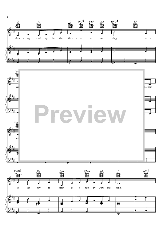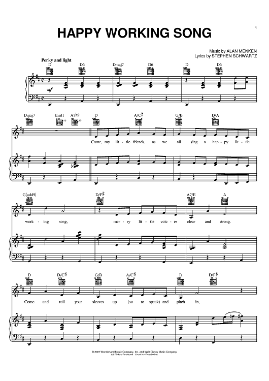 Digital Sheet Music for Happy Working Song by Alan Menken, Stephen Schwartz, Amy Adams scored for Piano/Vocal/Chords; id:402874