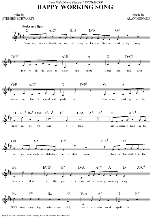 Digital Sheet Music for Happy Working Song by Alan Menken, Stephen Schwartz, Amy Adams scored for Lead Sheet; id:441353