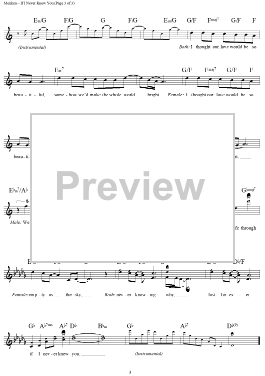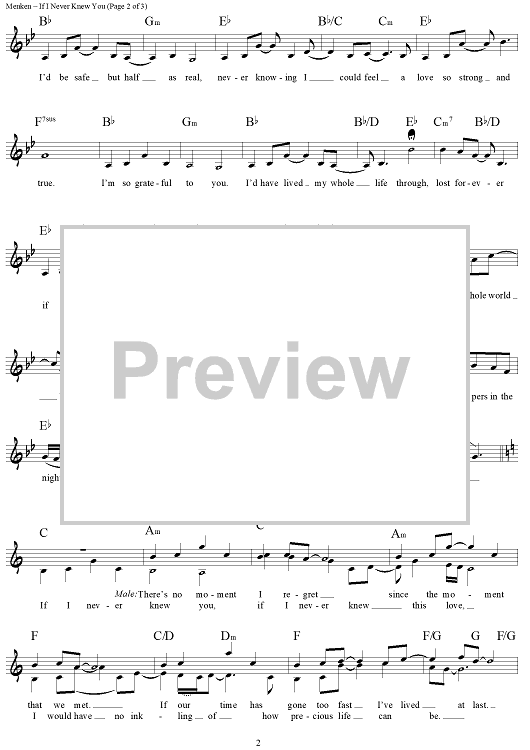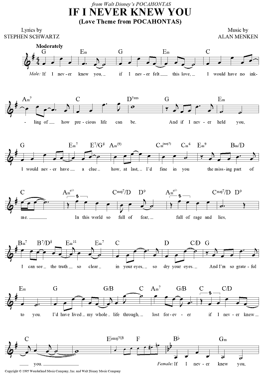 Digital Sheet Music for If I Never Knew You by Alan Menken, Stephen Schwartz scored for Lead Sheet; id:441806