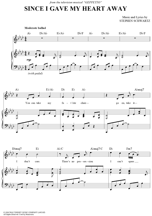 "Since I Gave My Heart Away" Sheet Music by Stephen Schwartz