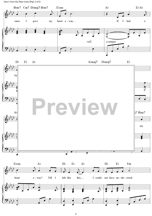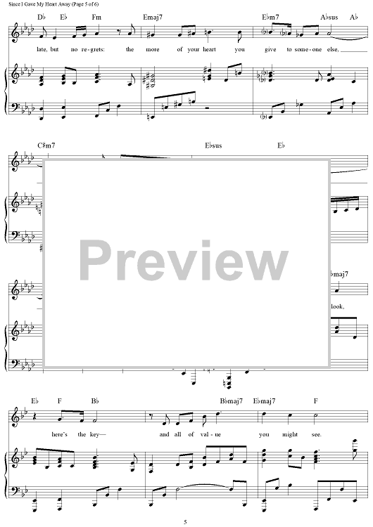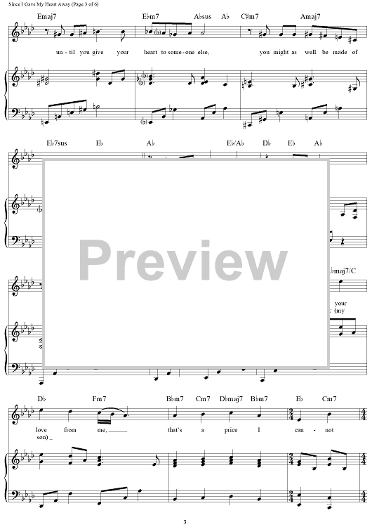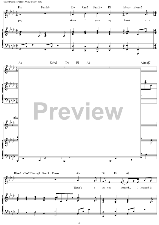 Digital Sheet Music for Since I Gave My Heart Away by Stephen Schwartz scored for Piano/Vocal/Chords; id:288174