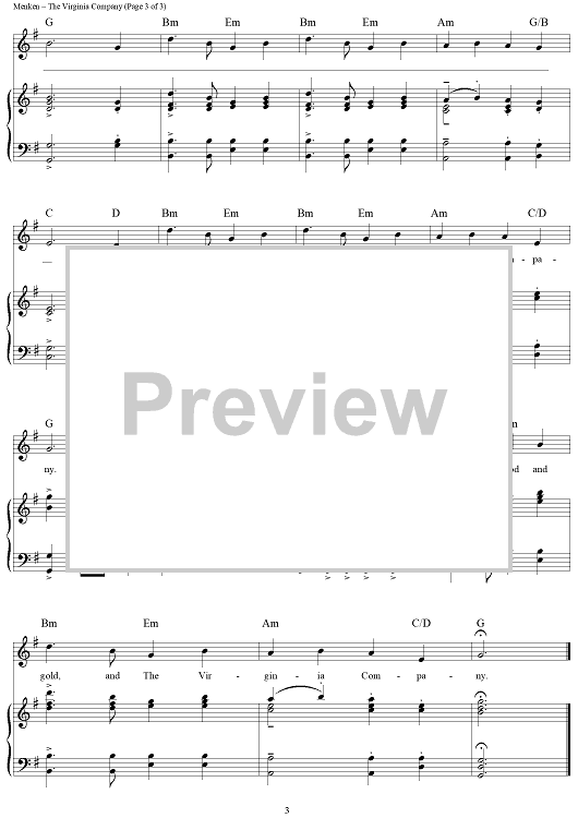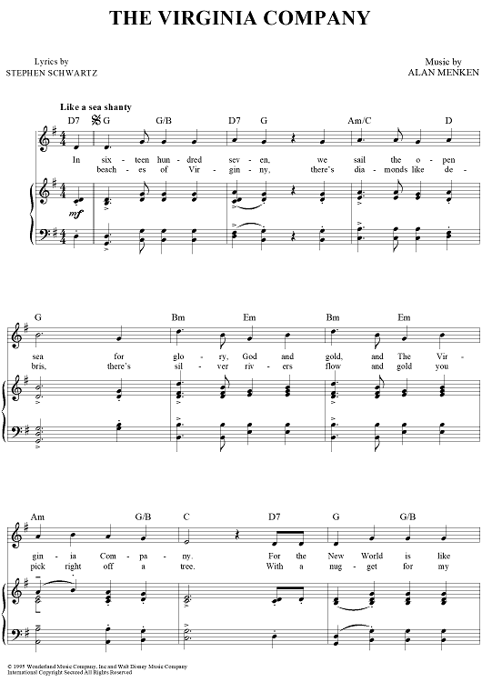 Digital Sheet Music for The Virginia Company by Alan Menken, Stephen Schwartz scored for Piano/Vocal/Chords; id:418114
