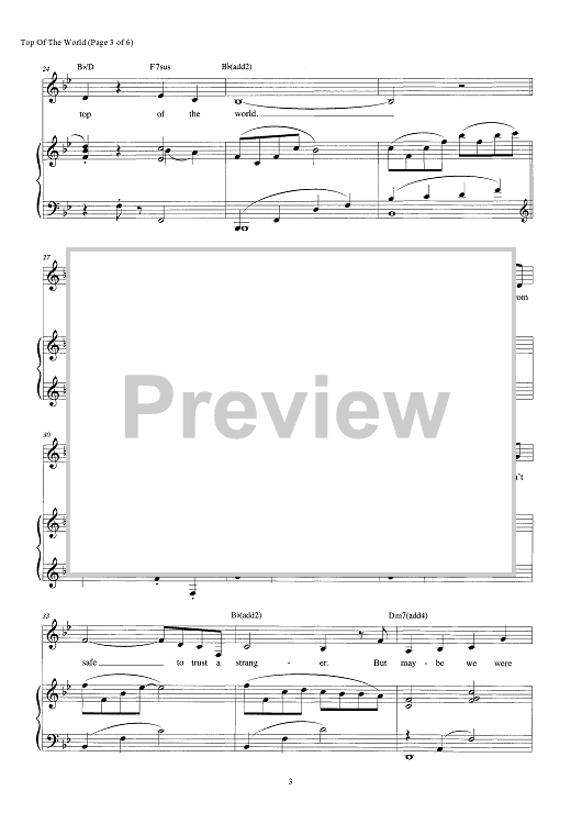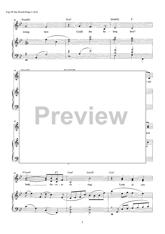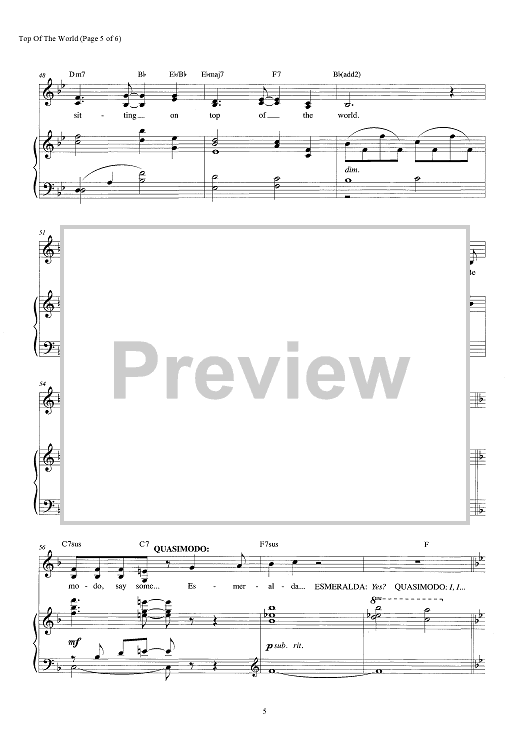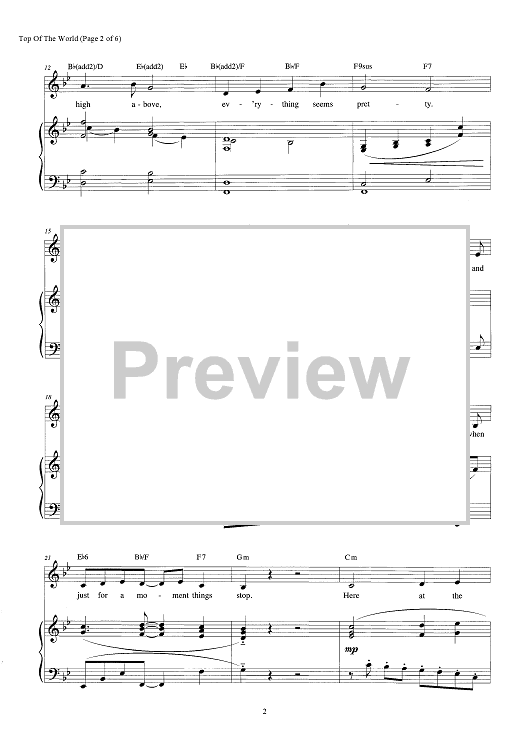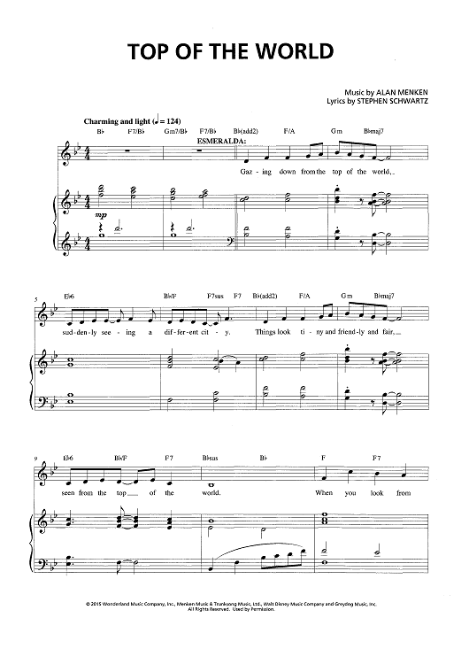 Digital Sheet Music for Top Of The World by Alan Menken, Stephen Schwartz scored for Piano/Vocal/Chords; id:466638