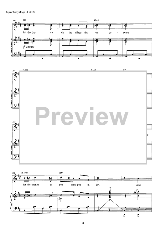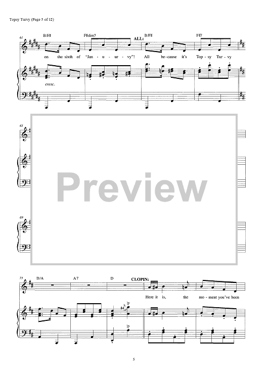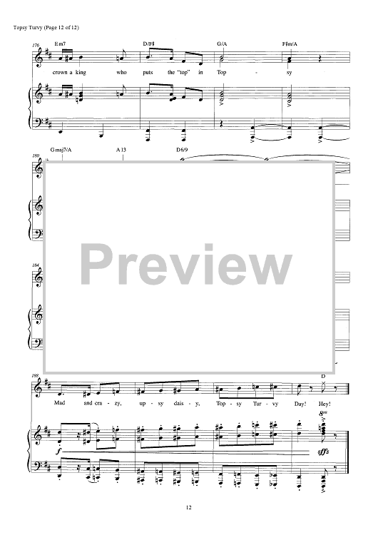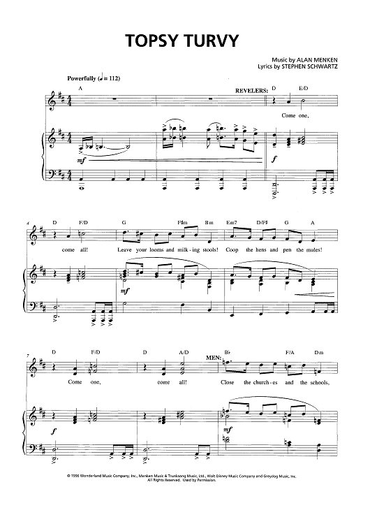 Digital Sheet Music for Topsy Turvy by Alan Menken, Stephen Schwartz scored for Piano/Vocal/Chords; id:466639