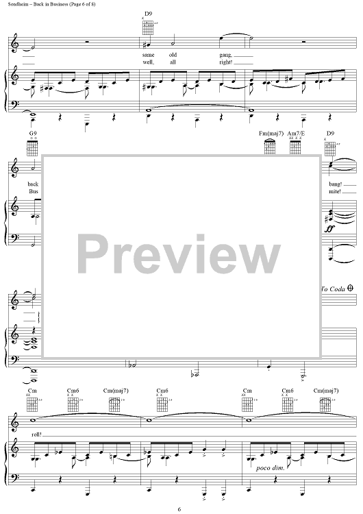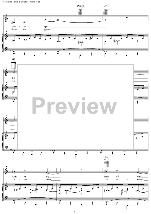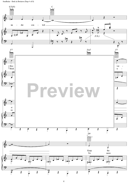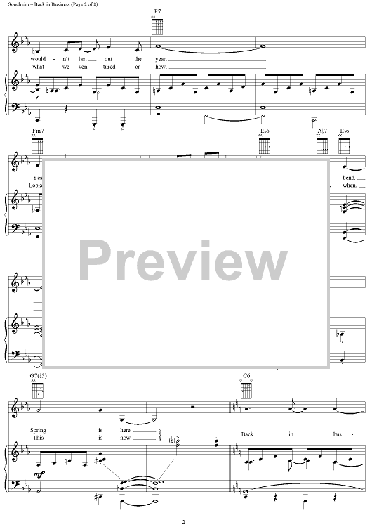 Digital Sheet Music for Back in Business by Stephen Sondheim scored for Piano/Vocal/Chords; id:151641