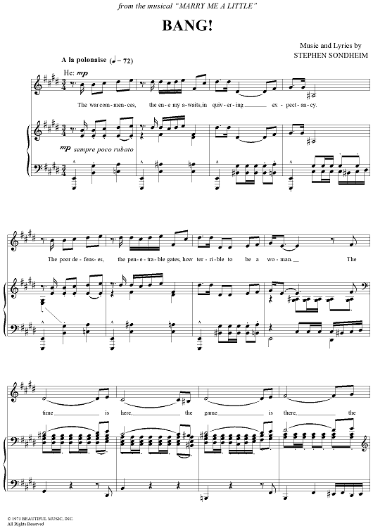Digital Sheet Music for Bang! by Stephen Sondheim scored for Piano/Vocal; id:120390