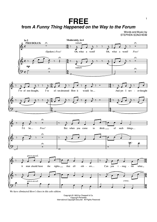 Digital Sheet Music for Free by Stephen Sondheim scored for Piano/Vocal/Chords; id:387792