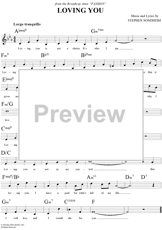Digital Sheet Music for Loving You by Stephen Sondheim scored for Lead Sheet; id:120656