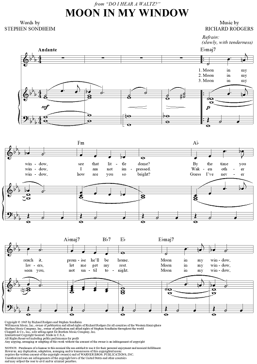Digital Sheet Music for Moon in My Window by Stephen Sondheim, Richard Rodgers scored for Piano/Vocal/Chords; id:355995