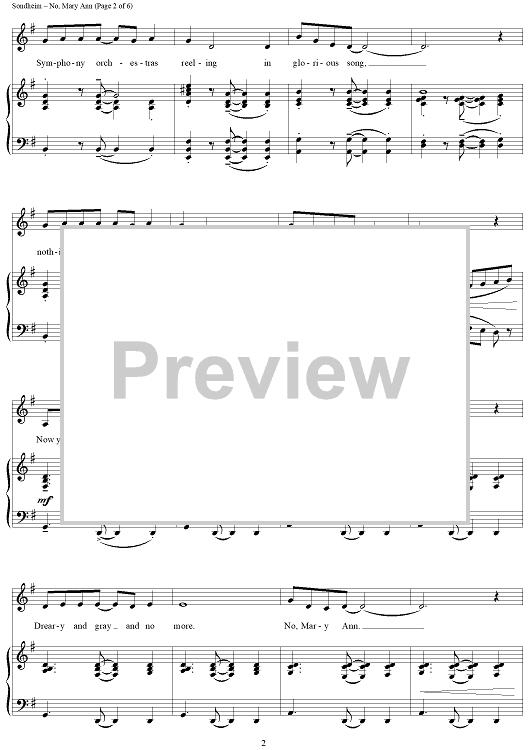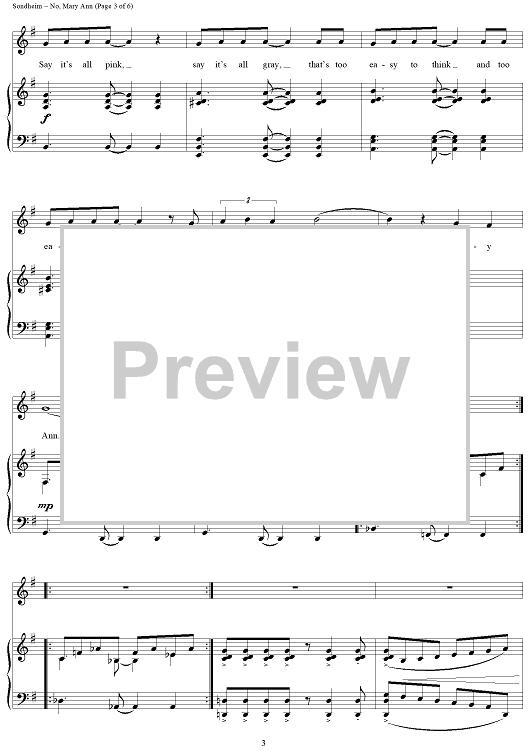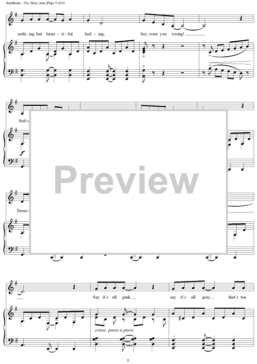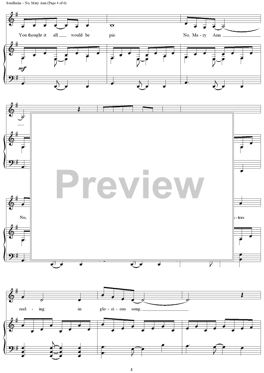 Digital Sheet Music for No, Mary Ann by Stephen Sondheim scored for Piano/Vocal; id:168344