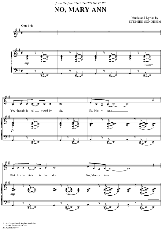 "No, Mary Ann" Sheet Music by Stephen Sondheim