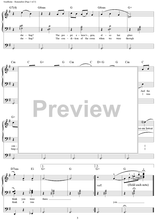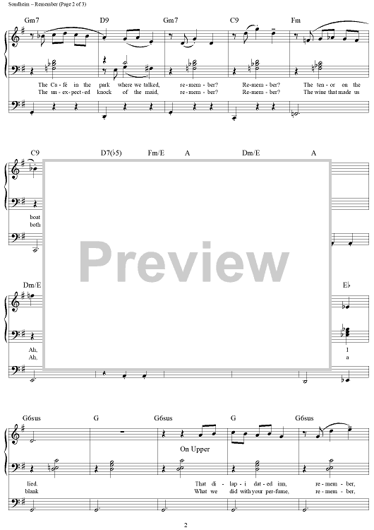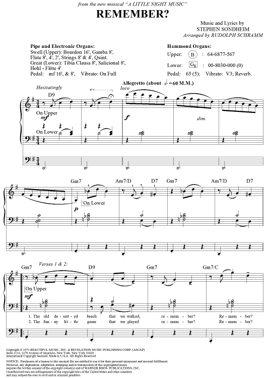 Digital Sheet Music for Remember? by Stephen Sondheim, Rudolph Schramm scored for Organ/Vocal/Chords; id:258893
