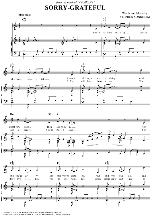 Digital Sheet Music for Sorry-Grateful by Stephen Sondheim scored for Piano/Vocal/Chords; id:258888