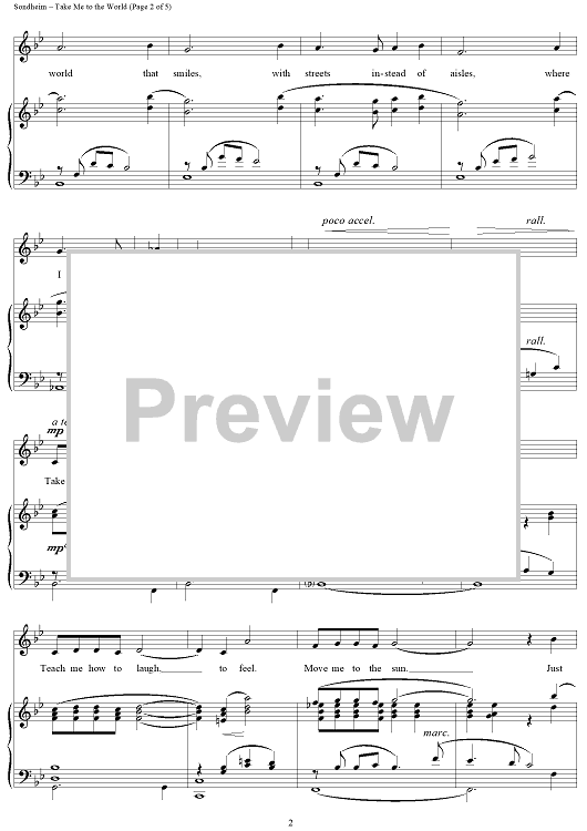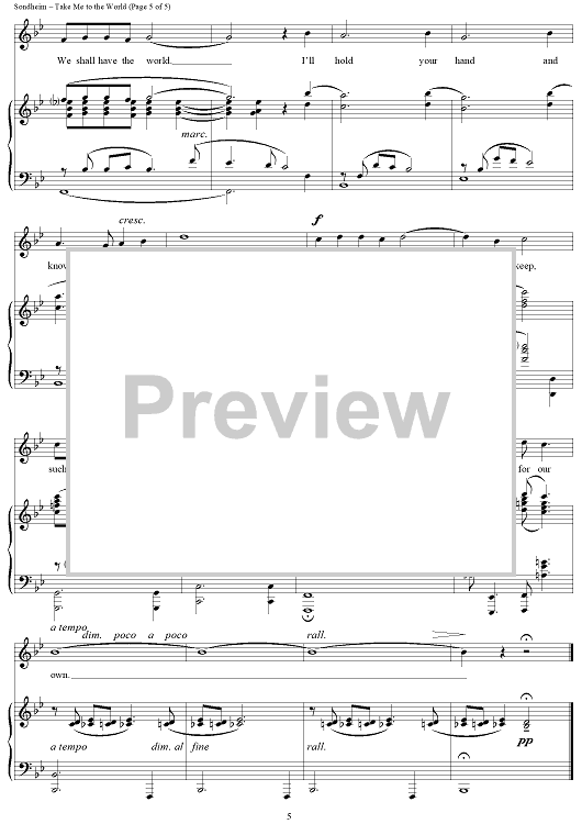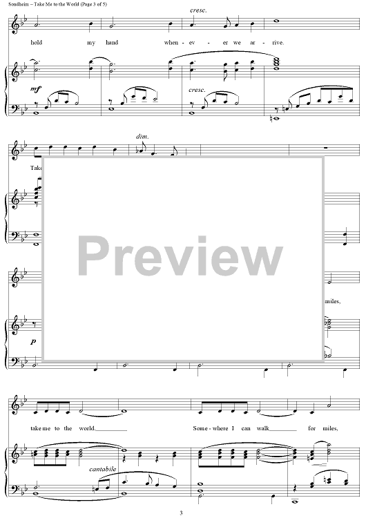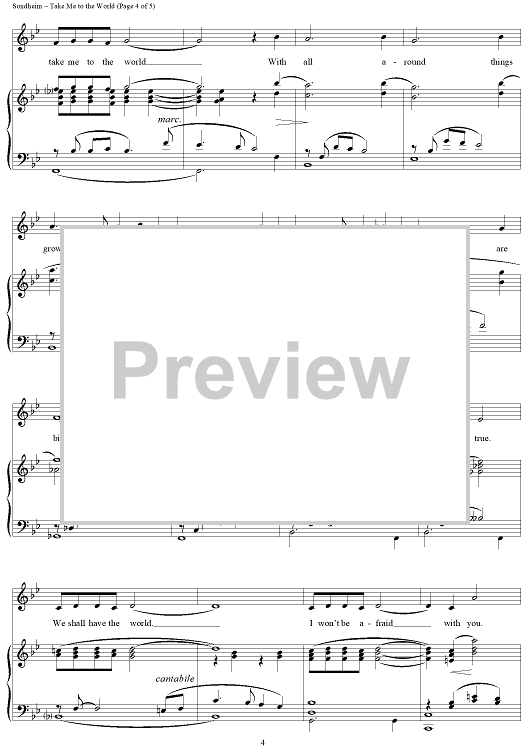 Digital Sheet Music for Take Me to the World by Stephen Sondheim scored for Piano/Vocal; id:120345