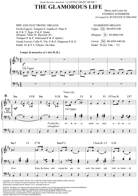Digital Sheet Music for The Glamorous Life by Stephen Sondheim, Rudolph Schramm scored for Organ Solo; id:258930