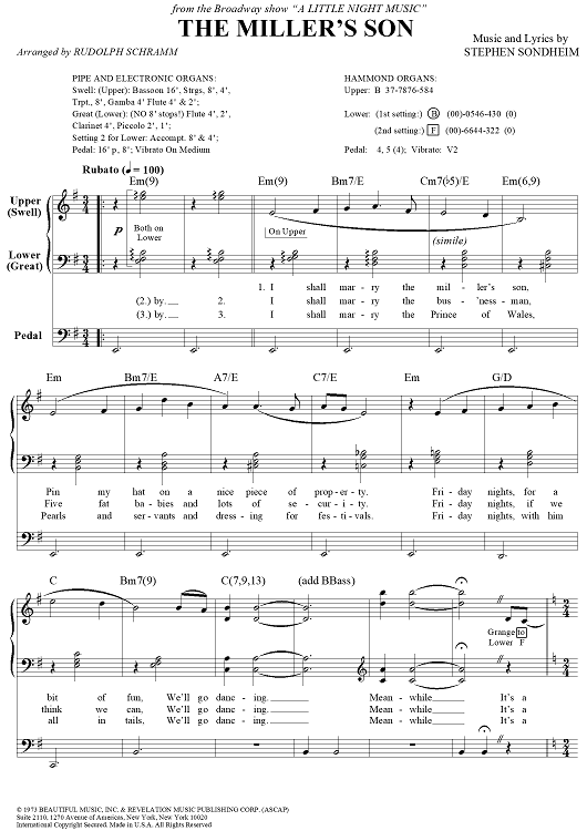 Digital Sheet Music for The Miller's Son by Stephen Sondheim, Rudolph Schramm scored for Organ Solo; id:258664
