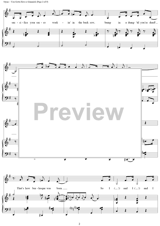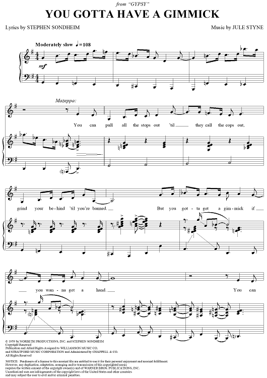 Digital Sheet Music for You Gotta Have a Gimmick by Stephen Sondheim, Jule Styne scored for Piano/Vocal/Chords; id:361905