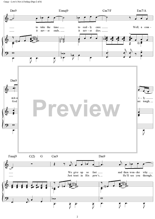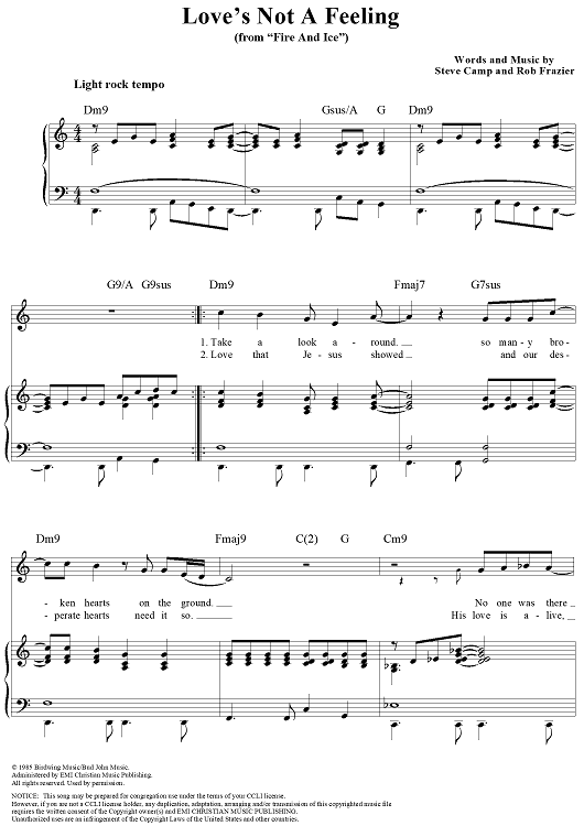 Digital Sheet Music for Love's Not A Feeling by Steve Camp, Rob Frazier scored for Piano/Vocal/Chords; id:119196