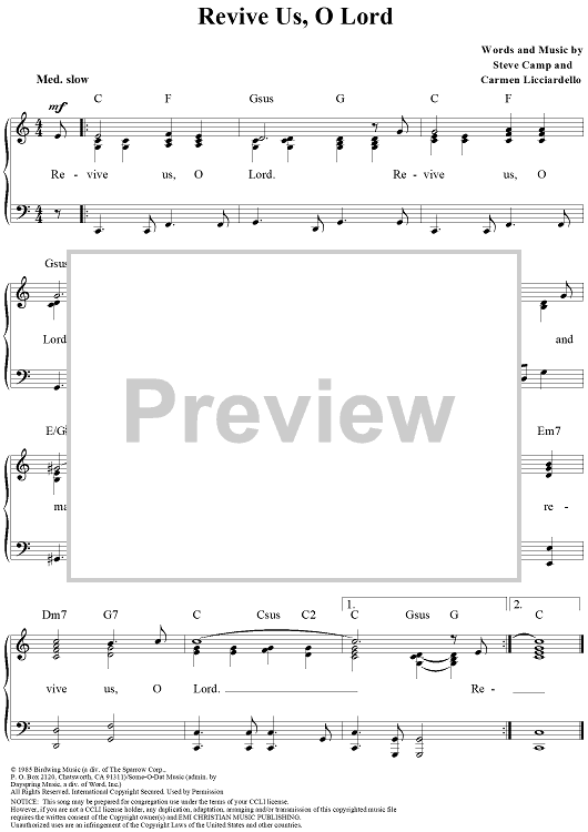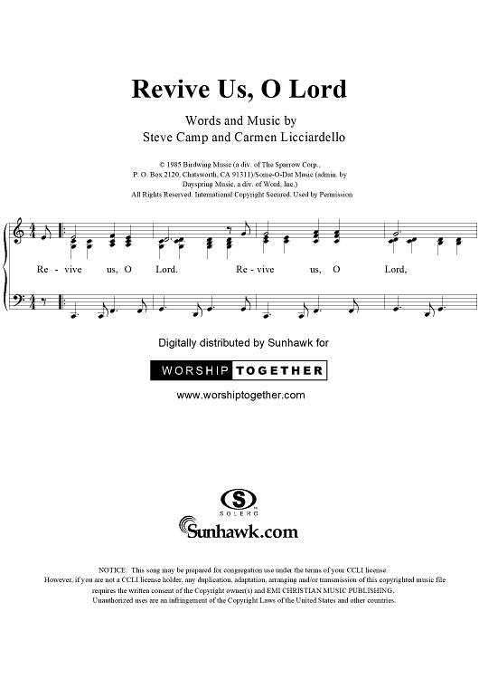 Digital Sheet Music for Revive Us, O Lord by Steve Camp, Carman scored for Piano/Vocal/Chords; id:114199