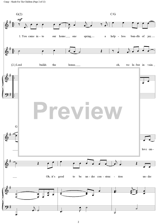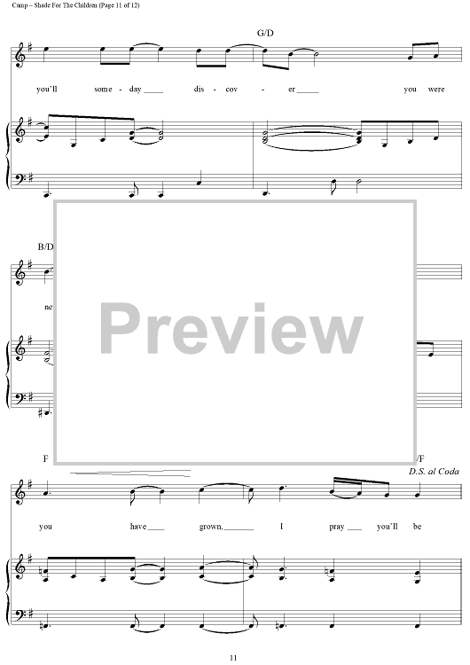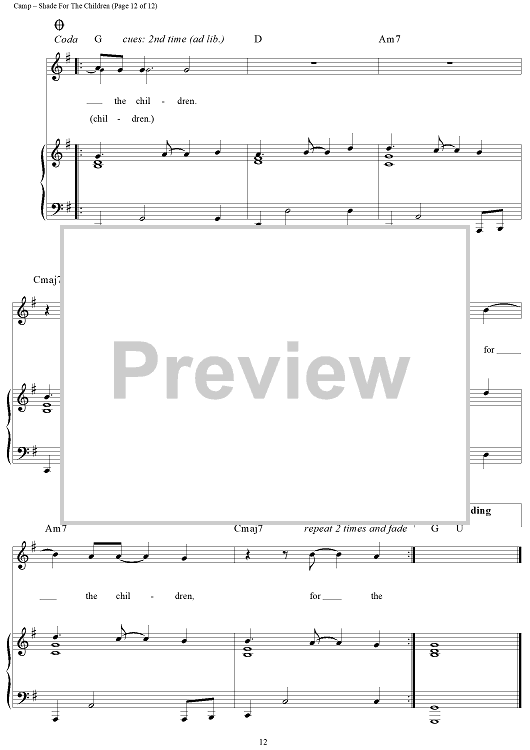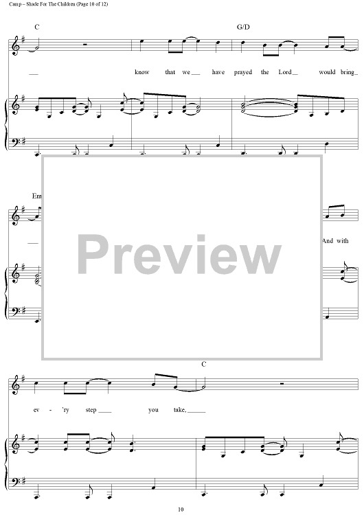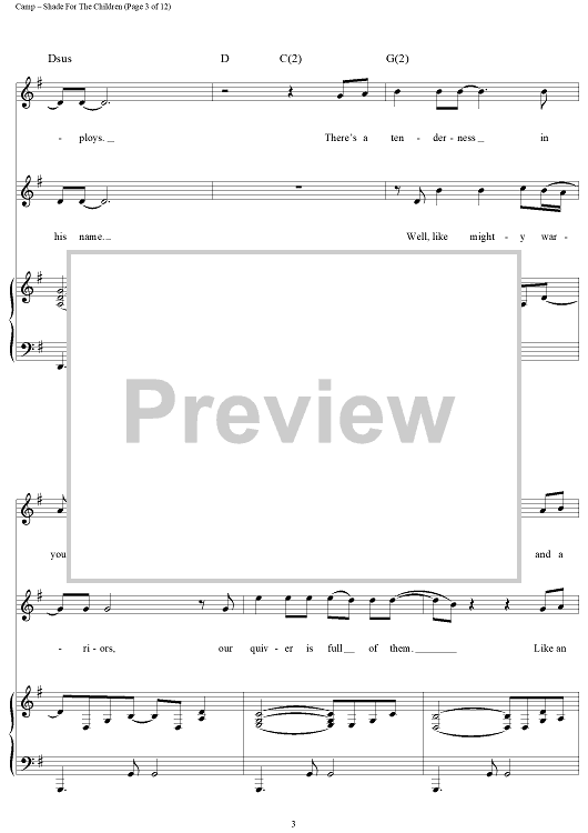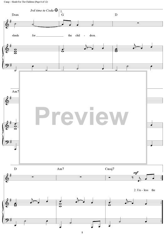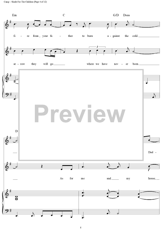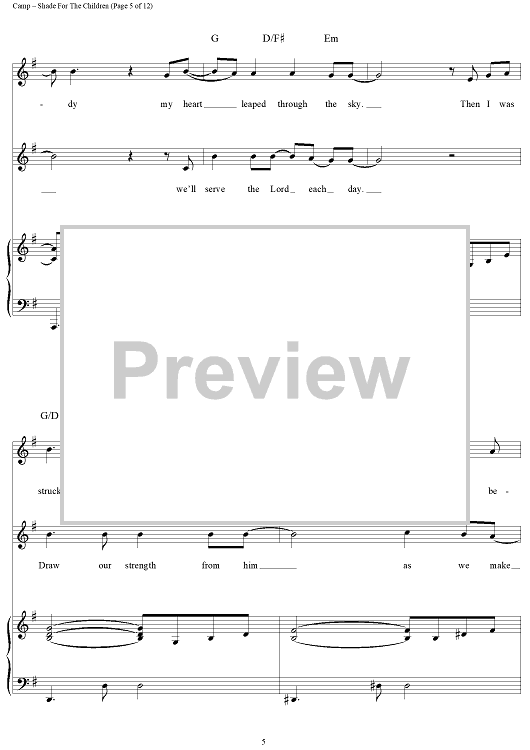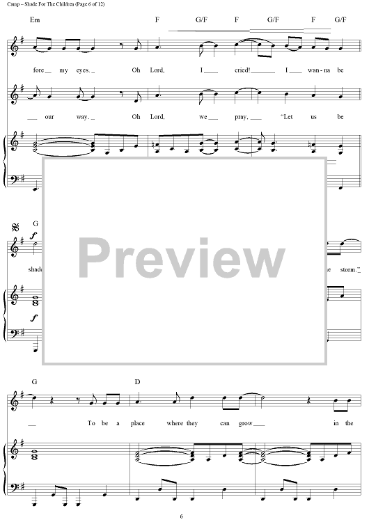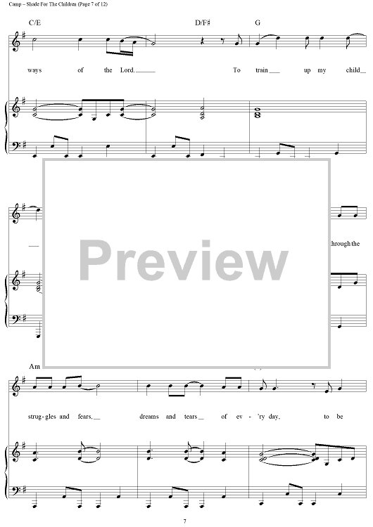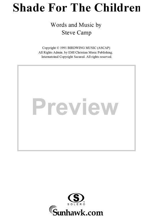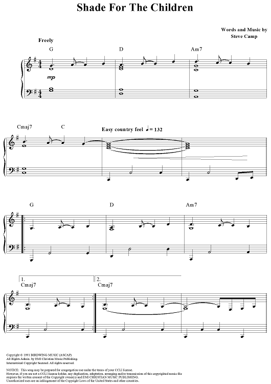Digital Sheet Music for Shade for the Children by Steve Camp scored for Piano/Vocal/Chords; id:124114