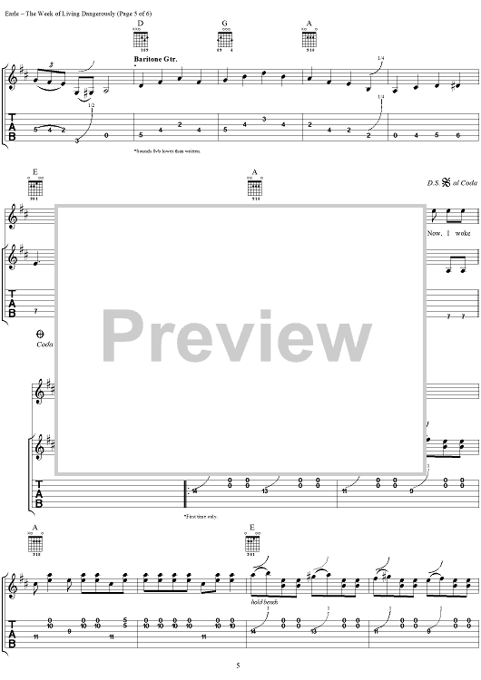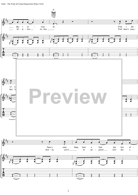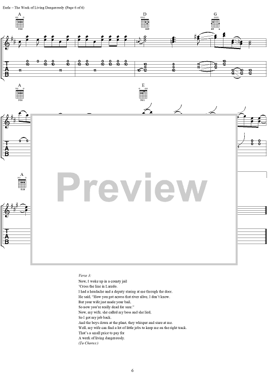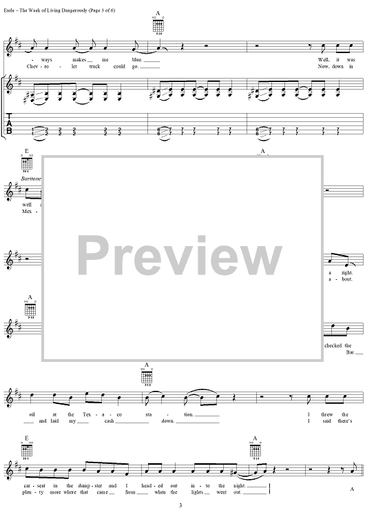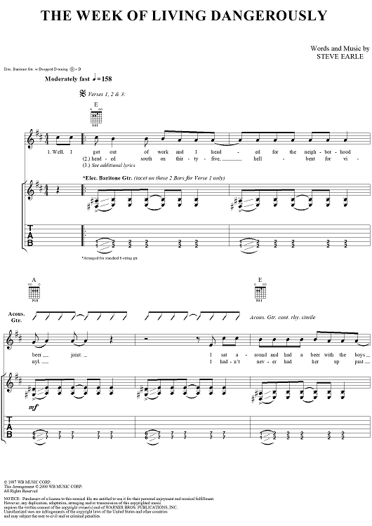 "The Week of Living Dangerously" Sheet Music by Steve Earle
