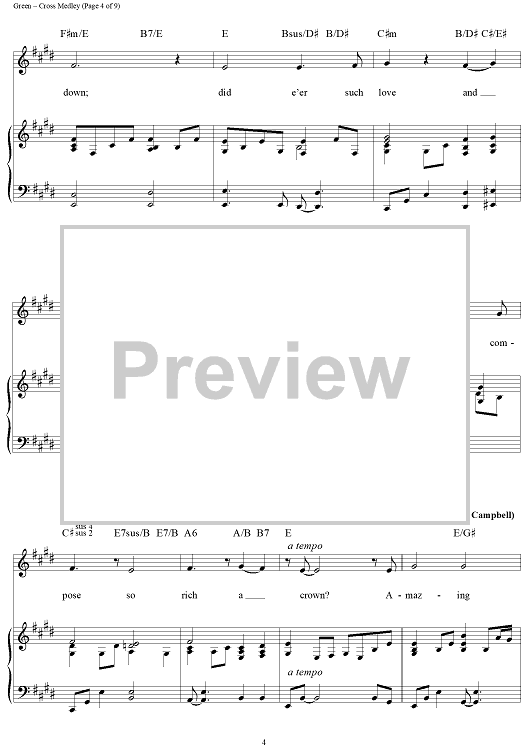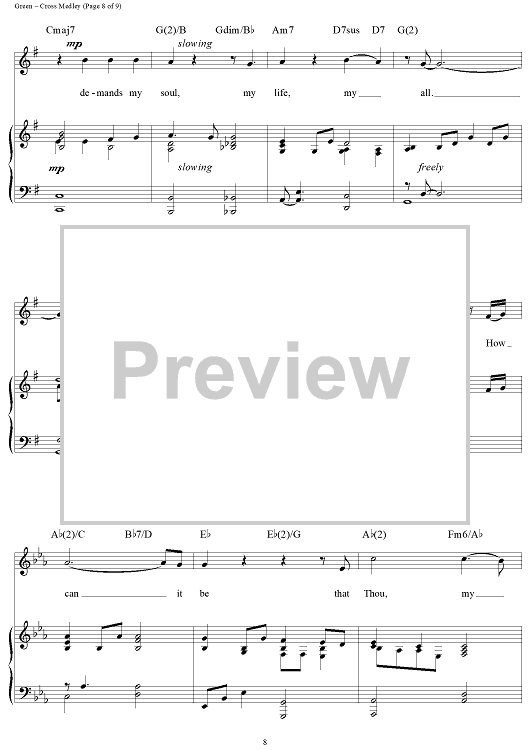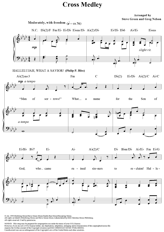 Digital Sheet Music for Cross Medley by Isaac Watts, Charles Wesley, Steve Green, Greg Nelson, Philip P. Bliss, Thomas Campbell scored for Piano/Vocal/Chords; id:119929