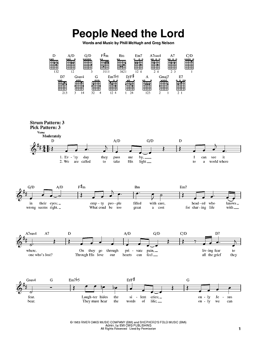 Digital Sheet Music for People Need The Lord by Steve Green, Greg Nelson, Phill McHugh scored for Easy Guitar; id:398260