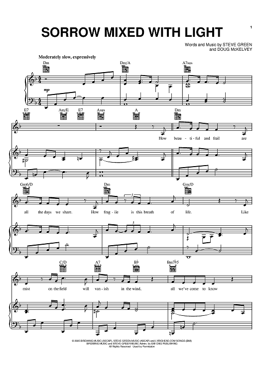 Digital Sheet Music for Sorrow Mixed With Light by Steve Green, Doug McKelvey scored for Piano/Vocal/Chords; id:384971