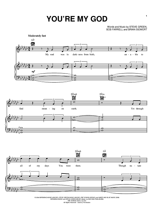 Digital Sheet Music for You're My God by Steve Green, Bob Farrell, Brian Siewert scored for Piano/Vocal/Chords; id:384970