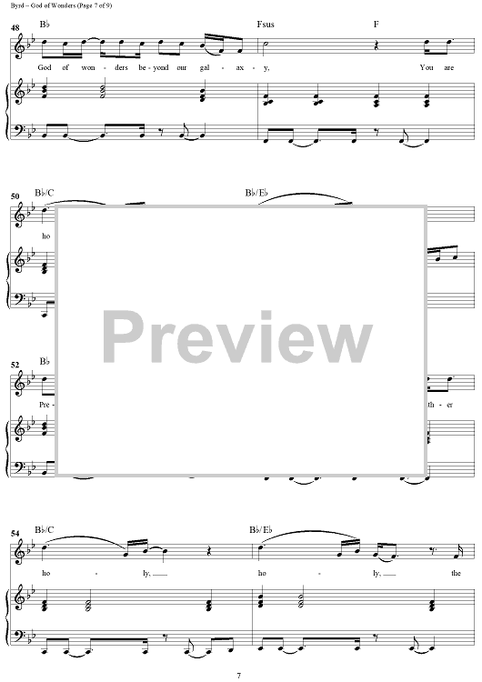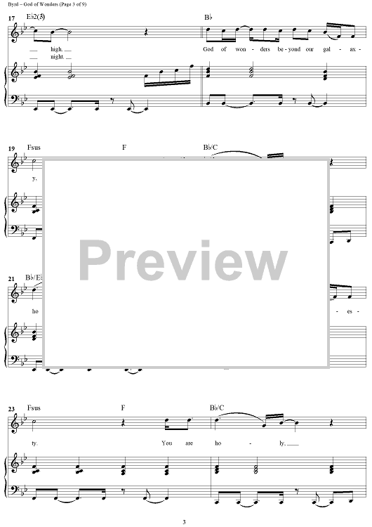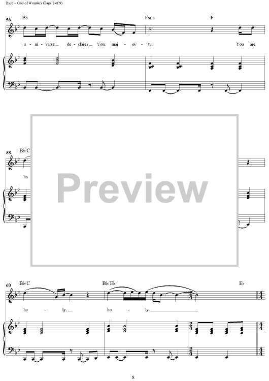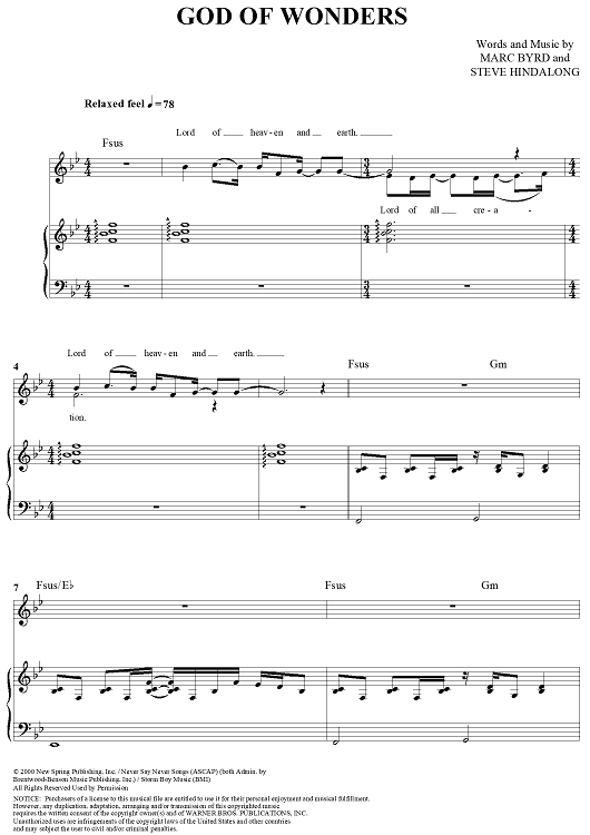 Digital Sheet Music for God of Wonders by Mac Powell, Marc Byrd, Steve Hindalong, Cliff Young, Danielle Young scored for Piano/Vocal/Chords; id:287113