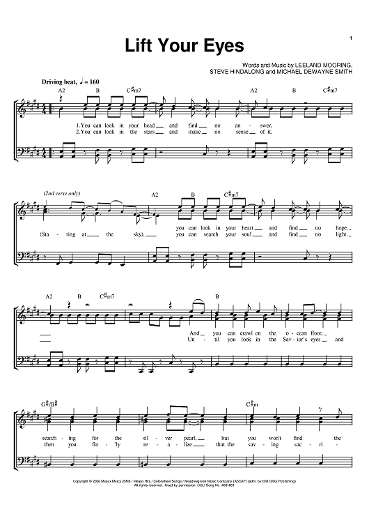 Digital Sheet Music for Lift Your Eyes by Michael W. Smith, Steve Hindalong, Leeland Mooring, Leeland scored for Piano/Vocal/Chords; id:396168