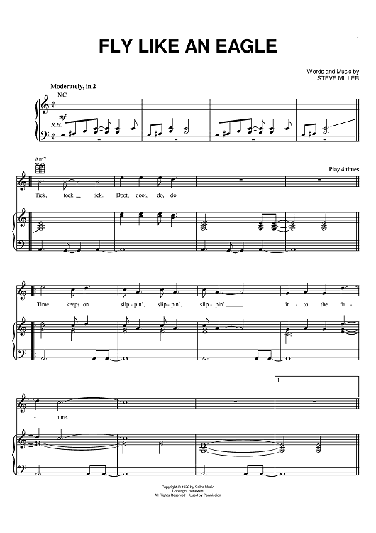 Digital Sheet Music for Fly Like An Eagle by Steve Miller, Seal, Steve Miller Band scored for Piano/Vocal/Chords; id:386267