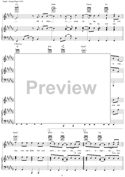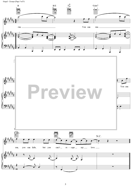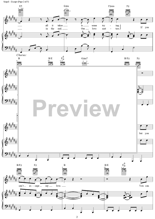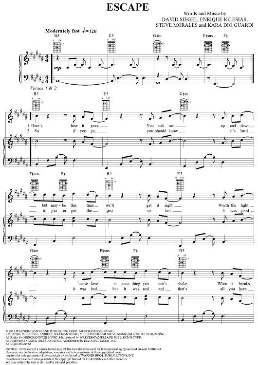 Digital Sheet Music for Escape by Enrique Iglesias, David Siegel, Steve Morales, Kara Dio Guardi scored for Piano/Vocal/Chords; id:287986