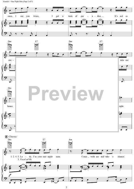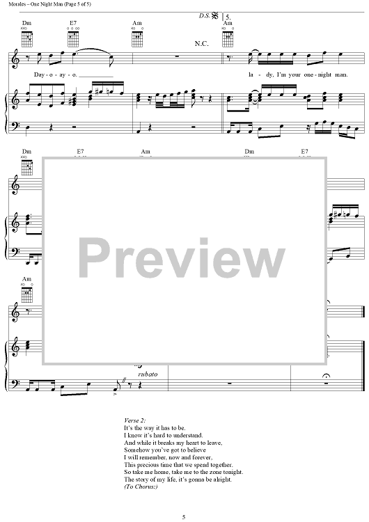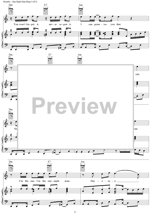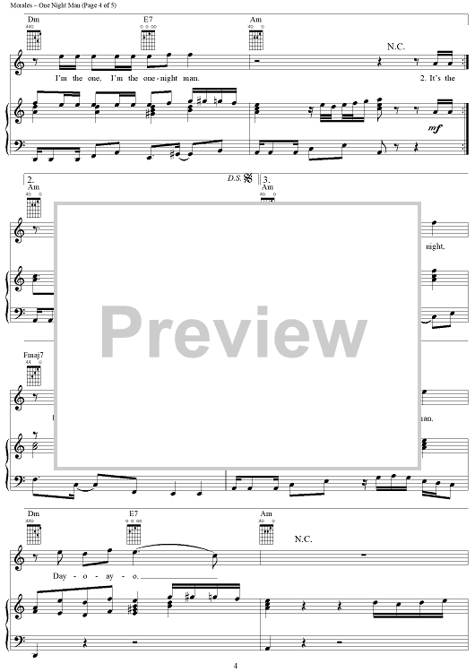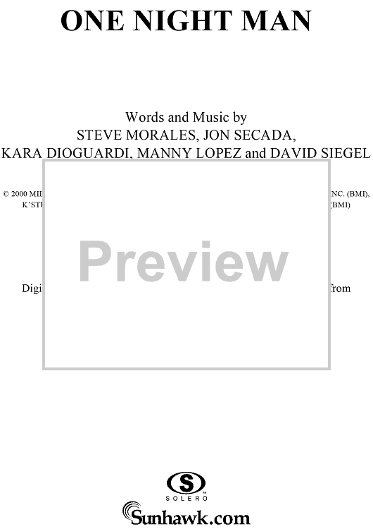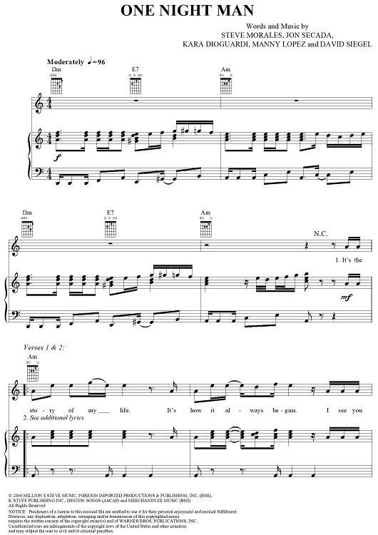 Digital Sheet Music for One Night Man by Jon Secada, Ricky Martin, David Siegel, Steve Morales, Kara DioGuardi, Manny Lopez scored for Piano/Vocal/Chords; id:288280