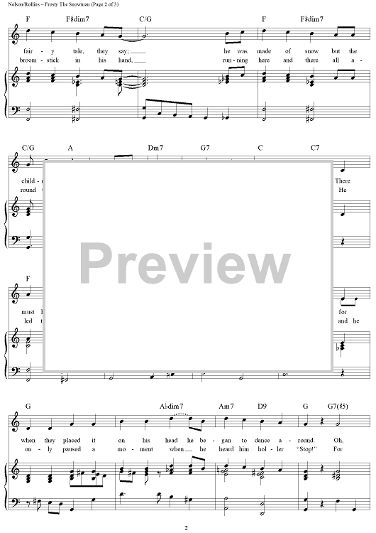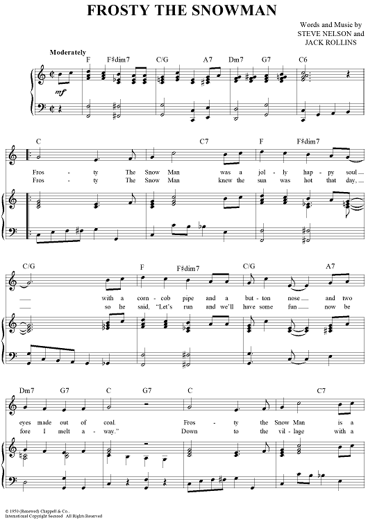 Digital Sheet Music for Frosty The Snow Man by Steve Nelson, Jack Rollins scored for Piano/Vocal/Chords; id:396124