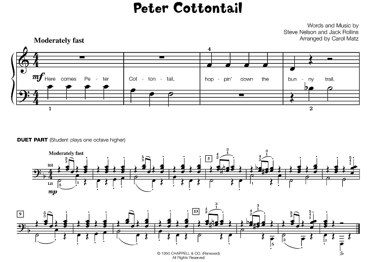 Digital Sheet Music for Peter Cottontail by Steve Nelson, Jack Rollins, Carol Matz scored for Piano; id:499875