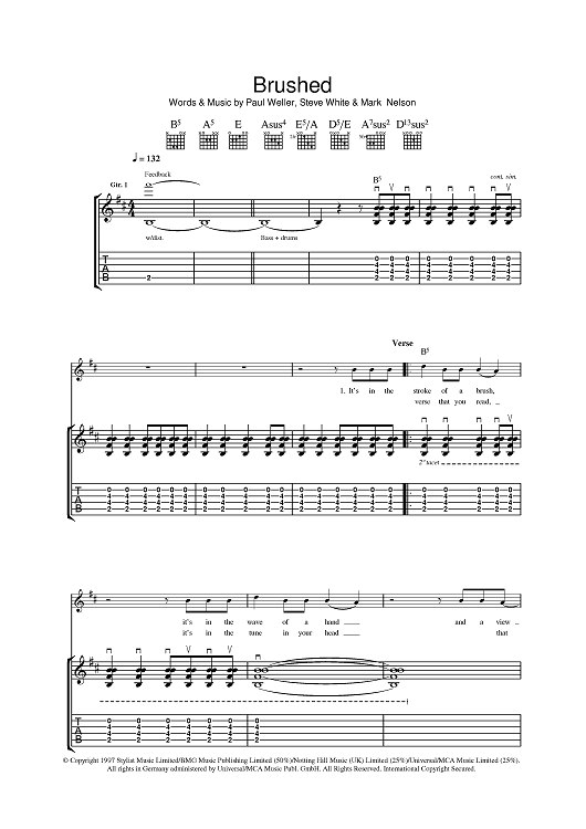 Digital Sheet Music for Brushed by Mark Nelson, Paul Weller, Steve White scored for Guitar Tab; id:396358