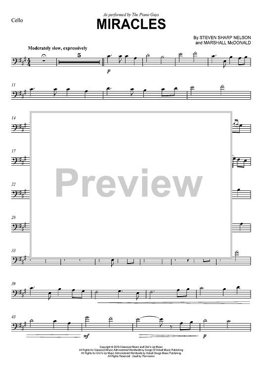 Digital Sheet Music for Miracles (As performed by The Piano Guys) by Steven Sharp Nelson, The Piano Guys, Marshall McDonald scored for Cello and Piano; id:467380