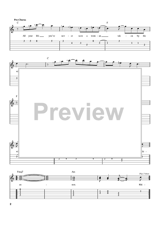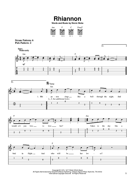 Digital Sheet Music for Rhiannon by Stevie Nicks, Fleetwood Mac scored for Easy Guitar Tab; id:379199