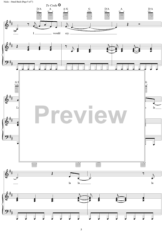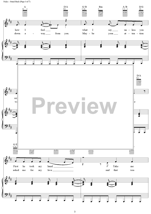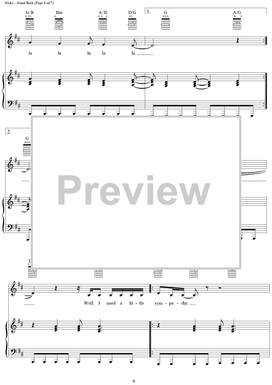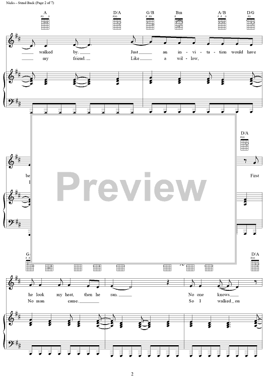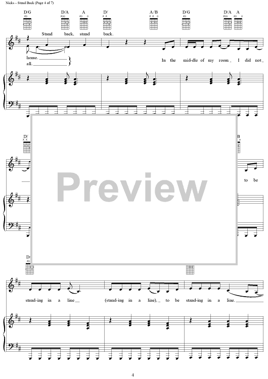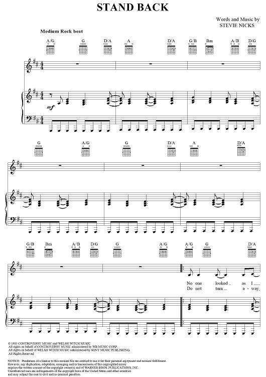 Digital Sheet Music for Stand Back by Stevie Nicks scored for Piano/Vocal/Chords; id:120747