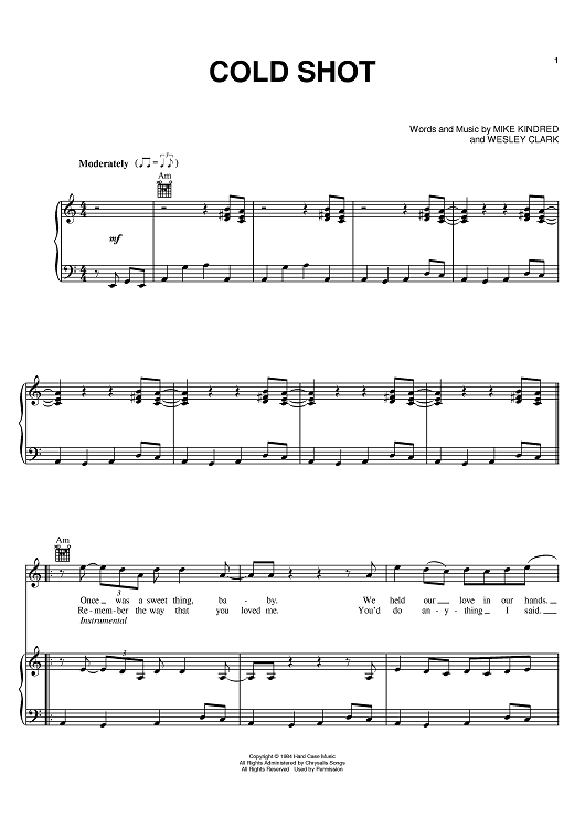 Digital Sheet Music for Cold Shot by Stevie Ray Vaughan, Mike Kindred, Wesley Clark scored for Piano/Vocal/Chords; id:383683