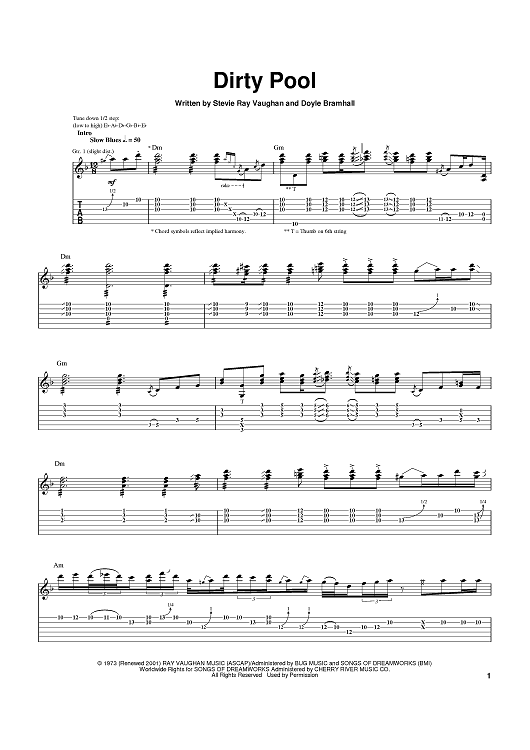 Digital Sheet Music for Dirty Pool by Stevie Ray Vaughan, Doyle Bramhall II scored for Guitar Tab; id:369492