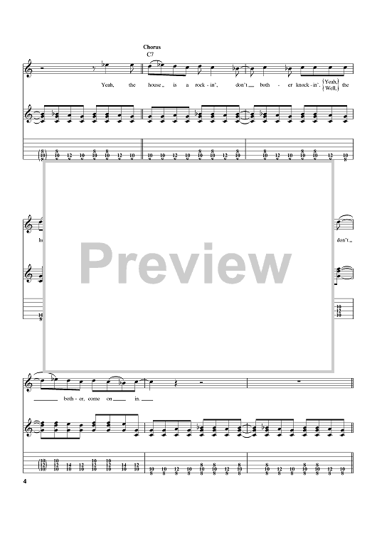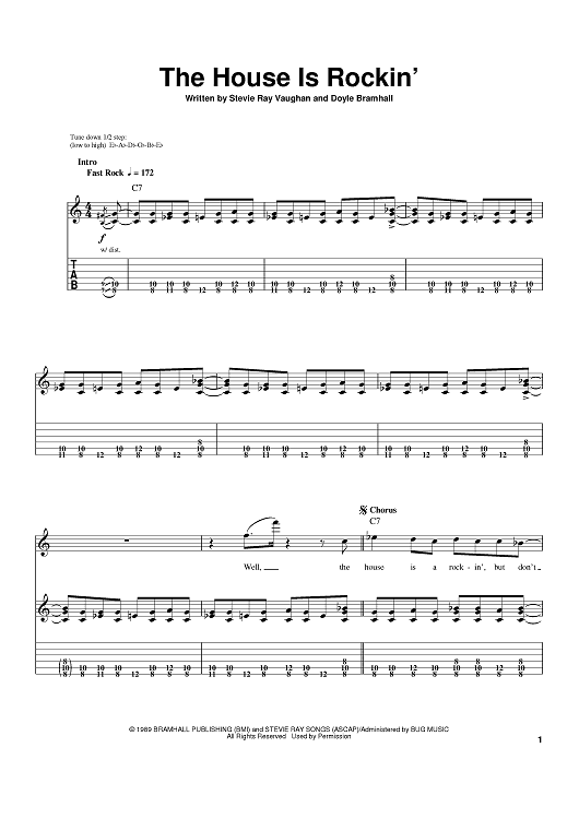 Digital Sheet Music for The House Is Rockin' by Stevie Ray Vaughan, Doyle Bramhall II scored for Guitar Tab; id:374275