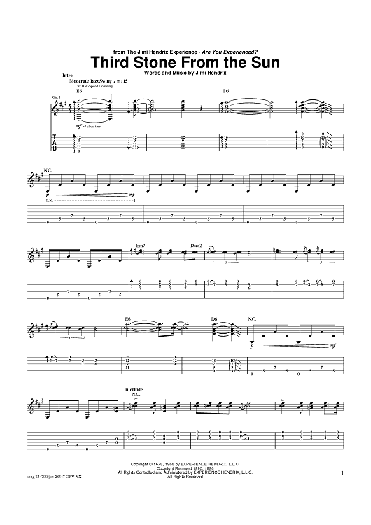 Digital Sheet Music for Third Stone From The Sun by Stevie Ray Vaughan, Jimi Hendrix, Pat Metheny scored for Guitar Tab; id:372883