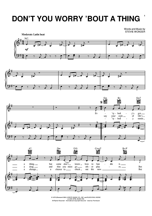 "Don't You Worry 'Bout A Thing" Sheet Music by Stevie Wonder