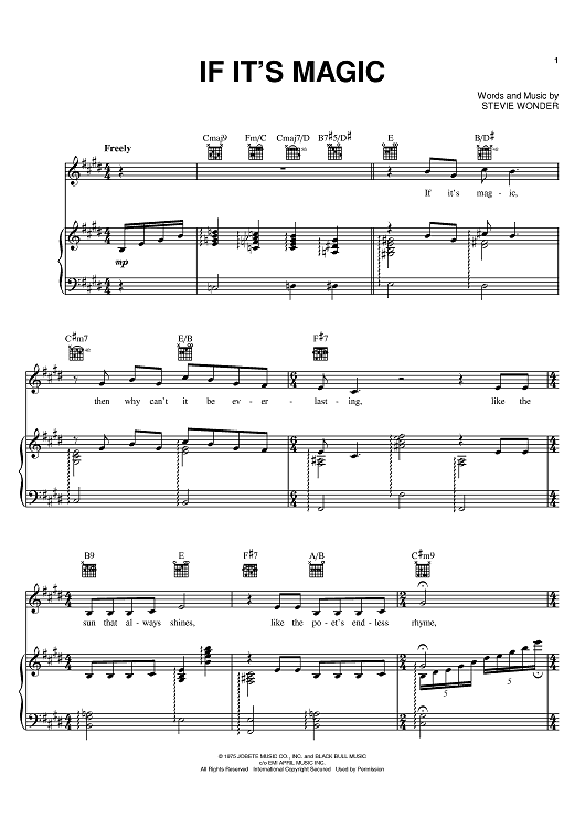 Digital Sheet Music for If It's Magic by Stevie Wonder scored for Piano/Vocal/Chords; id:370240